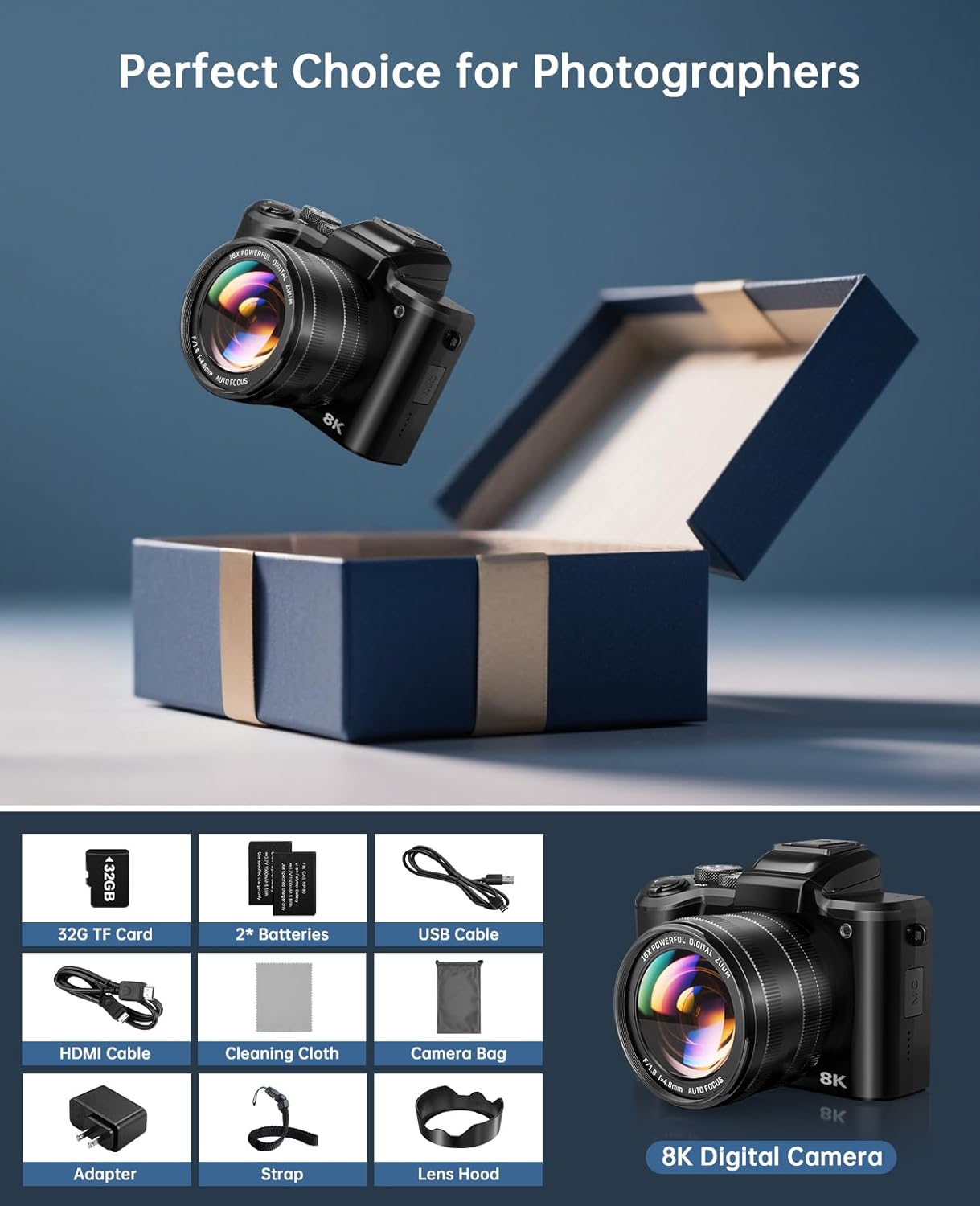 Introducing the 8K Digital Camera for Photography – Autofocus 88MP WiFi Vlogging Camera, your ultimate companion for capturing stunning photos and videos. Whether you’re a professional photographer or a vlogger looking to elevate your content, this dual-lens camera is designed to meet your needs.